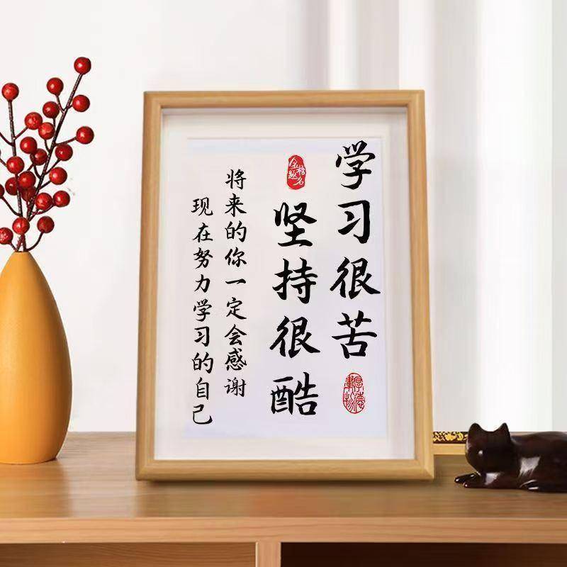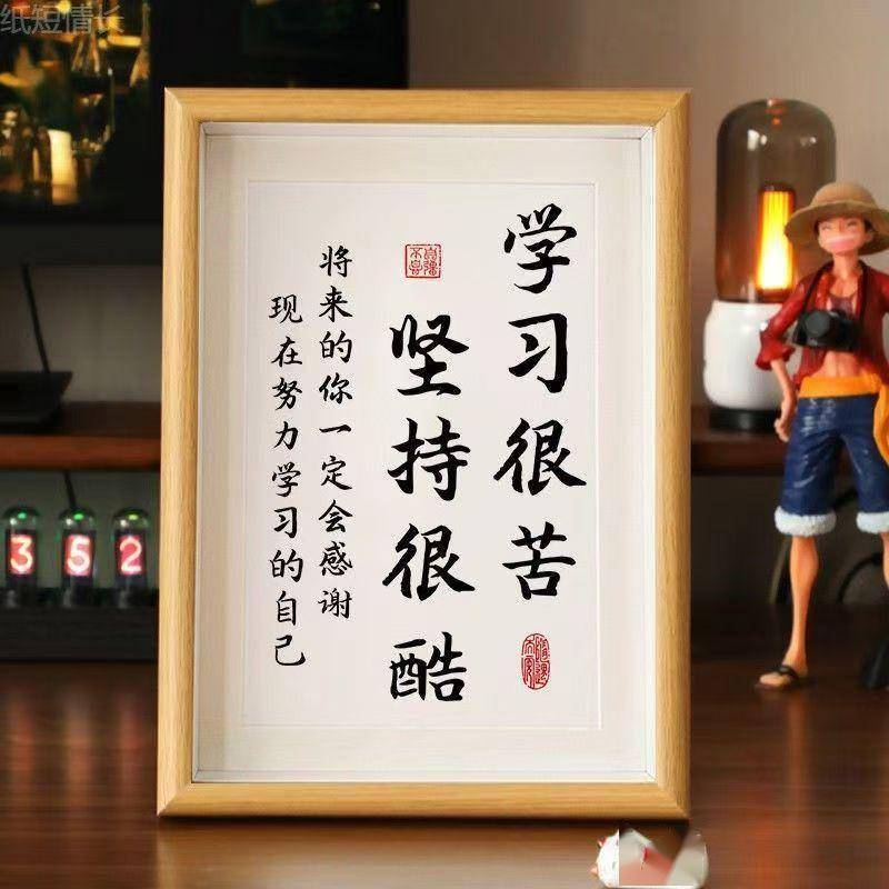 清晨的阳光斜照在书桌上,你伸手调整那个写着“学习很苦,坚持很酷”的实木相框,指尖触到凹凸有致的激光刻字时,昨日熬夜复习的疲惫突然被注入了新的能量。这不是普通的装饰品,而是用北美黑胡桃木打造的励志宣言——天然木纹每一道都是独一无二的成长轨迹,8寸的尺寸刚好占据视线C位却不会压迫桌面空间。相框背面的隐藏支架设计,让它能稳稳立在显示器旁,每次抬头都能与那句“你背不下来的书总有人能背下来”四目相对
